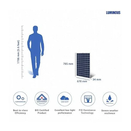 - Luminous Solar panels are made from a block of silicon, consisting of a large number of crystals. They are highly efficient Solar panels for solar power generation which come at best price with IEC certification and 25 years performance warranty.